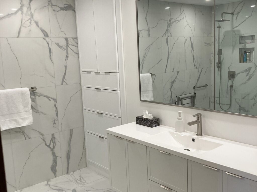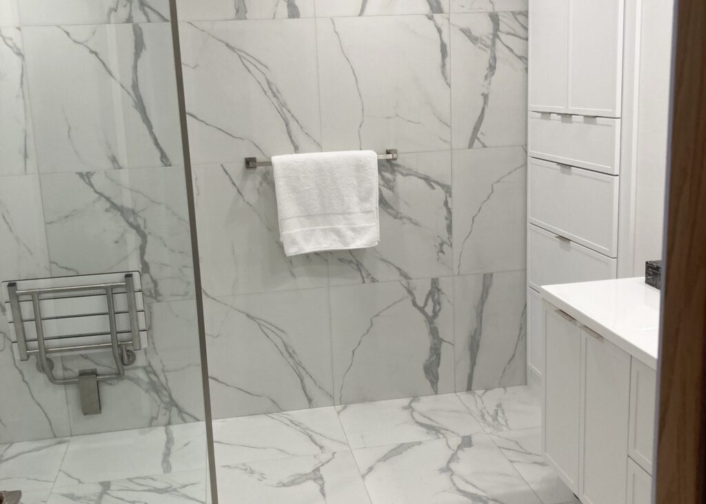The Baillargeon project showcases a fully renovated bathroom designed to meet the specific needs of the clients. Combining accessibility, comfort, and contemporary design, this project reflects our expertise in creating spaces that are both functional and aesthetic, where practicality and elegance coexist harmoniously.